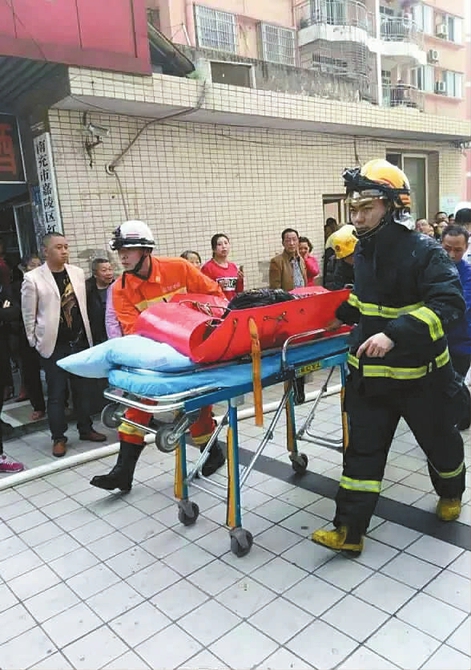 这时, 南充市公安消防支队嘉陵区大队的消防官兵和嘉陵区公安分局巡警大队、火花派出所的民警赶到了现场,失火家庭李某某的儿媳妇也正好回来, 她连忙打开房门。消防人员戴上防火面具,冲进了火源点所在的李某某卧室, 从浓烟中救出了老人。“当时我在他家门外, 见到老人面部略微被烧伤,裤子几乎被烧完了,消防人员把他抬到了楼下的救护车上, 送到附近的一家医院抢救。” 据嘉陵区公安分局火花派出所民警介绍,医生检查后宣告老人已无生命体征,初步断定是吸入大量浓烟窒息死亡的。