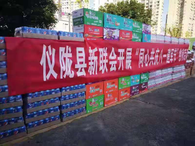 慰问物质:慰问活动中,县新联会成员不仅给县武警中队官兵们送去了1600瓶矿泉水,50箱方便面,40箱可乐,50份药品等慰问物资。