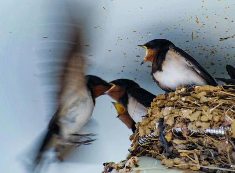 春天来了,万象更新,柳树吐出了新芽,桃树开出了红花,聪明灵利的小燕子也换上新装从南方赶回来了,飞到屋檐下,转来转去,从田埂含些泥巴和青草在屋檐下筑巢,一天又一天,嘴巴都岀血了,终于筑好了巢, 母燕产蛋孵小鸟 公燕和母燕轮流捉虫子喂小鸟 ,小燕子一天天长大,可母燕子有时又累又饿,甚至昏到掉到地上,它们的哺育之情,让我难以忘怀,感动万分。