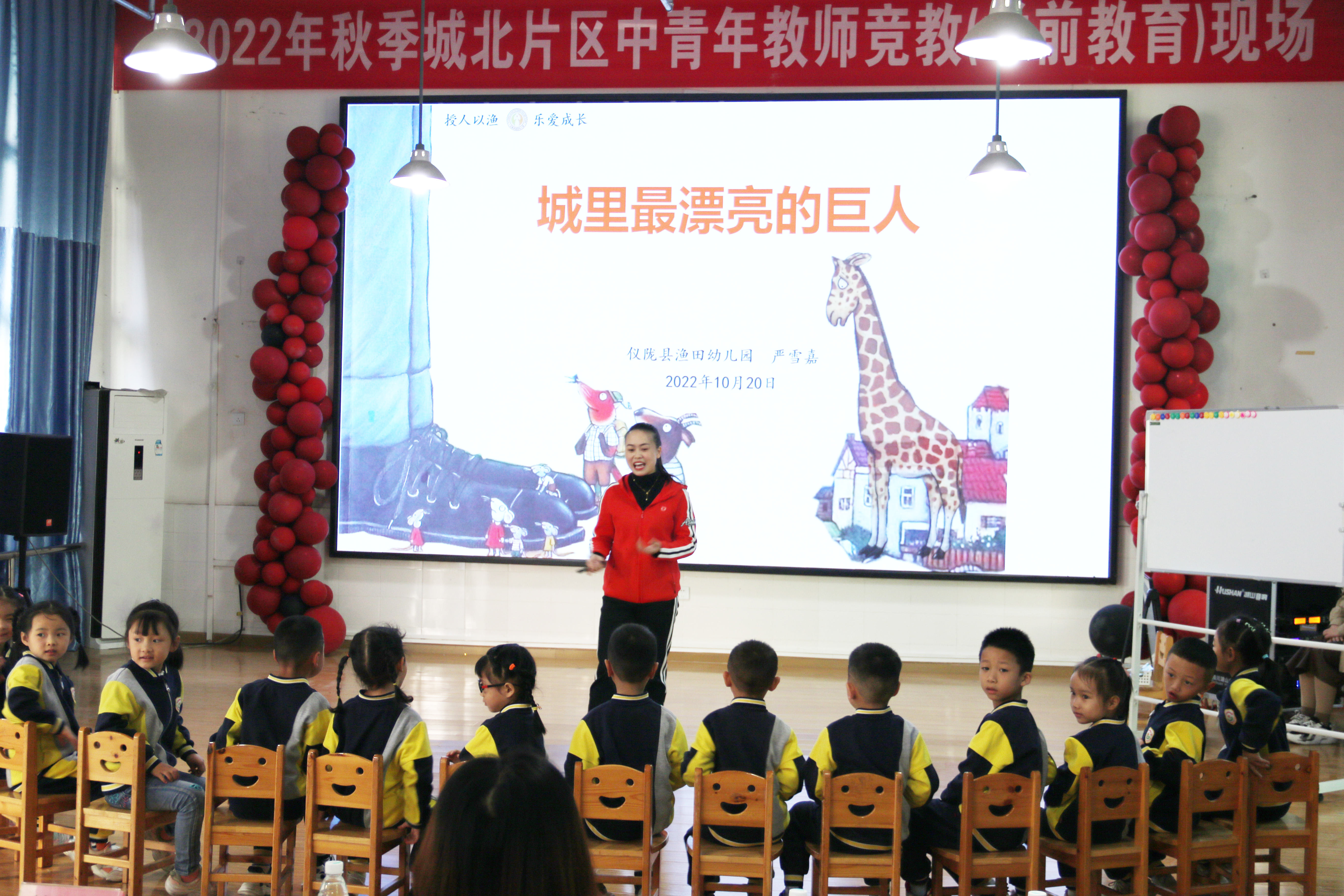 辖区内三所公办园的三位老师参加了此次竞教,参赛老师无论是在活动内容选择、活动创意构思、活动流程组织,还是教具准备、课件运用等方面都做了精心设计,切实将课程游戏化理念渗透到教学环节中,注重幼儿主体性,呈现出了一个个精彩纷呈、颇具创意的教学活动。经过激烈角逐,渔田幼儿园严雪嘉老师执教的《城里最漂亮的巨人》夺得桂冠。