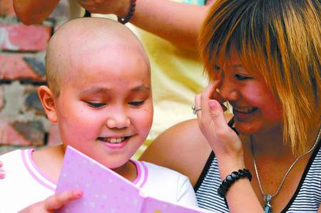 四川新闻网--成都晚报讯: 近20名成都爱心人士昨日到仪陇乡下看望程程 孩子演唱的《体会的心语》将成“生命绝唱” 本报记者 杨杰 李祥云 仪陇报道 在白血病复发放弃治疗、生命进入“倒计时”之时,10岁的白血病女孩董鹏程想“在有限的生命里,为家乡做一点事,让家乡也有柏油路”(本报曾做报道)。昨日下午2时许,经过5个多小时奔波,三辆“川A”牌照的汽车停在了南充市仪陇县二道镇的街口。一行近20人匆匆跳下车,挽起裤管,踏上通往古井村的泥泞路。大家都迫不及待地想见到这个坚强乐观的“生命小战士”。 下午3时许,在程程的父亲董仲权的带领下,“绿色频道”乐队主唱树子、MIXPLAY乐队主唱麦子、大学生志愿者、企业老总等近20名爱心人士一行终于走进坐落在山坳下的一间农家小院。经过细心打扮的小程程穿着白色的裙子和粉色的小凉鞋,笑盈盈地从屋里跑出来。“叔叔阿姨好,你们辛苦了!”程程的声音听上去很甜美。 志愿者和爱心人士们给程程带去了大包小包的玩具娃娃、糖果、笔记本。“师哥怎么没有来看我,我想他们呢!”小程程在人群中没有看到“战友”们的身影,显得有点失望。记者赶紧给她抱来一个超级大的史努比狗狗,“这是师哥送给你的,他身体不太好,见到狗狗就见到师哥啦!” 最让程程开心的则是“战友”心琳姐姐写来的信:“程程,你知道为什么太阳的光芒总是那么耀眼吗? 因为她不怕风吹,不怕雨淋,坚定不移地在天空中绽放笑容,就算偶尔被乌云挡住了她的身体,她也会骄傲地扬起脸,露出笑容,所以,程程,你也要像太阳那般坚强,快快乐乐,相信自己,我知道我们都能行!我们会有美好的未来的。” 演唱歌曲 命运坎坷不怕什么 昨日,由于麦子和树子的到来,小程程的心愿得以实现——程程演唱了由自己作词、麦子谱曲、树子配乐的感恩歌曲《体会的心语》。烈日下,两位乐队主唱蹲在小程程身边,教了近半个小时,程程终于学会了这首歌。大学生志愿者拿起摄像机,拍摄下这感动的一幕。悠扬的吉他声和小程程甜美的歌声在山坳里回荡。 “童年时光,欢歌笑语,快乐是生活,命运是坎坷,暴风雨来创伤是我,针刺痛心,泪面情波,关爱是真,关心是情,雨后彩虹,阳光生活,面对勇气,胜利是我,命运坎坷,不怕什么,面对勇气,胜利是我,感谢恩心,学会好多好多。”小程程一遍遍地唱着,脸上始终挂着微笑。 “她能写出这样的歌词,实在是得到过太多人的帮助和关爱!”小程程的父亲董仲权告诉记者,程程原本是个内向的农村孩子,成为傅艳工作室的“生命小战士”后,小程程经常参加各种活动。后来,在大学生志愿者的辅导下,程程开始自己写日记、画画,写一些大人看不明白的句子。在她的日记里,用得最多的词语就是“我爱你们”“坚强”“不哭”“谢谢”“善良”“高兴”。 病情严重 孩子走路都不稳了 “根本就看不出这是个生病的娃娃哦!”“医生的诊断准确吗?程程看上去很健康啊,心态也那么好!”…… 望着小程程唱歌的开心样子,院子里的爱心人士都在窃窃私语,他们实在不相信这个孩子即将离开人世。来自成都理工大学的志愿者刘梦霞差一点就哭出声来。刘梦霞告诉记者,10天前,她曾经来看望过程程,小家伙的身体看不出什么异样,而现在出血点在小程程身上疯长,已经悄悄地爬上了小程程脸上,大片大片的瘀青“侵袭“着她的全身。“小程程走路有些不稳了,身子是僵硬的!”刘梦霞带着哭腔。志愿者们会尽快将程程唱歌的情形制作成视频,发到程程的博客里,让更多的人感受程程的坚强和美好。 分享惊喜 和同学们一起联欢 “哥哥、姐姐,你们陪我到学校里去嘛,小朋友们正在等我呢!他们从来没有听过乐队的现场演唱!”程程对这些哥哥、姐姐撒起娇来。原来,当知道乐队的哥哥、姐姐要来看望她时,她就想和同学们分享这份惊喜。学校的老师通过村广播站,通知了原本已经放暑假的孩子。 “来了,程程来了!”一行人步行20多分钟,来到程程位于山顶上的小学校。看着眼前的一幕,所有人都惊呆了:炎炎烈日下,原本放假的100多个孩子守候在此,列队站成两排,汗水侵透了他们的衣衫。看到程程,孩子们挨个上前和她拥抱。 为了让同学们开心点,程程提出,让志愿者们组织一场小小的联欢活动。在一间小小的教室里,程程大方地表演了第一个节目——教小朋友钉扣子。乐队主唱麦子和树子给同学们带来了一次震撼,吉他一亮相,这群山里的孩子都把眼睛瞪得大大的,小程程站在哥哥、姐姐身后,拍手打节拍。作为“回报”,山里孩子们也大方地现场表演了一套拳术《中国功夫》。“我好想永远和你们在一起,我想回到你们身边!”活动的最后,一向含蓄的程程大声地说着,声音传到很远…… 感悟生命 请关注程程的博客 昨日,记者再次登录了小程程的博客,翻看了她的日记、视频和照片。截至昨晚7时30分,该博客的浏览量为1172次。博客是由成都理工大学学生梦霞和朱朱以及其他志愿者用近一周的时间为程程制作的。 程程博客中的每一条留言都是对生命的感悟和对程程由衷的祝福及敬佩。网友“凋零”这样写道:“你和我一样大,命运却如此不同,我由衷地敬佩你,感谢你给我上了宝贵的一堂生命课程。”网友“爱哭的男人”留言:“看了你作词的《体会的心语》,我仿佛听到你在唱,我没有办法不流泪,为你加油,程程!” 刘梦霞告诉记者,