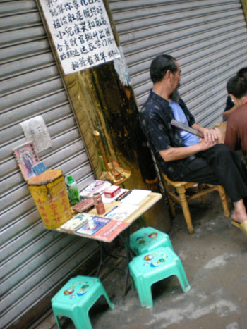 本站讯:在通往金城山入口处,狭小的入口就扎堆了4、5个算命摊,在共建“和谐社会”的同时,他们却在大力的宣传他的迷信,更具讽刺意味的是他们头上居然写着“书籍是人类进步的阶梯”。笔者不禁要问,到底该谁来管管他们?希望我们的职能部门能真正的负起监管的责任。