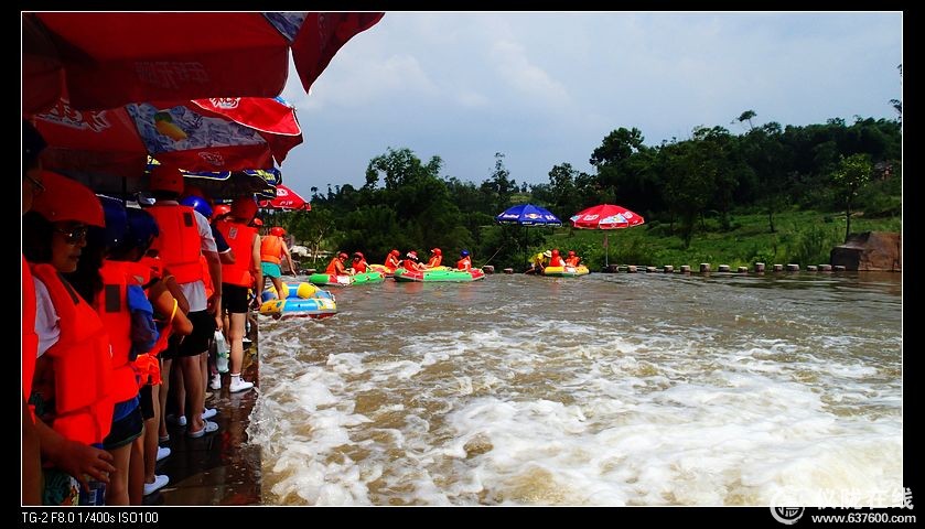 据说门票在平时便宜点,节假日水涨船高要160多大洋,我们团队最后以半折左右成交,也算不错了,谢谢各位友友们。从双龙湖到漂流点要15分钟左右,人真多啊,一片嘈杂,大家开始躁动起来。门口据说景区的车挂了游人的车车,还在那里撕了半天皮,把进出大门堵了半小时左右,最后才通了。波娃子喊大家从侧门跑出去上车,排队的有人还不安逸,他说来噻,都可以走噻。主要是要漂流,先汗蒸,一个个汗如雨下。大家在上面就先存放了东西,换了泳装,手机相机帽子什么的统统不能带,有人说是丢了几千块钱的玉石项链,呵呵。对了,发给的防水筒里面一定要带上一些钱钱,不然到点后就只能看到别人吃喝了,那时候又累又饿哈。