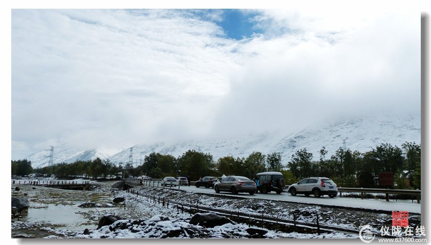 从山脚层层爬上飘雪的雅家埂,再旋下来顺路看红石滩,天冷路滑。到了磨西左拐往冷碛,看满大街来耍的人还不少,街头都在烧烤。又有点堵了,山沟里一串串车车,蔚为壮观。