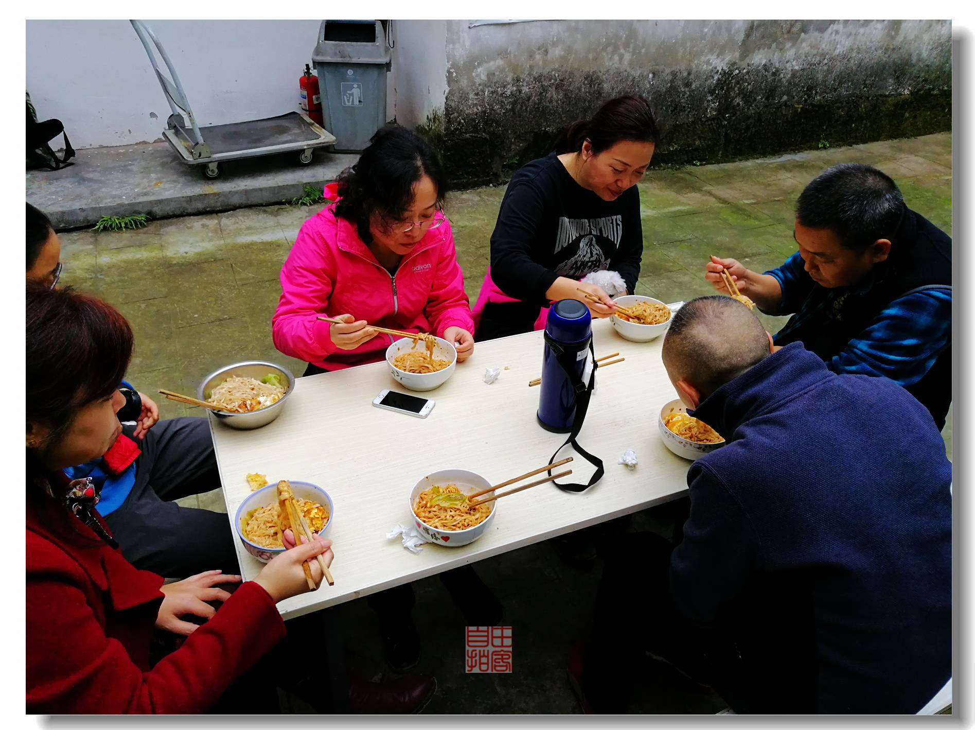 对了,还加了一个蛋。过后一看,碗上印着惜缘。这倒是,无缘不到俩母山,无缘就此一碗面。