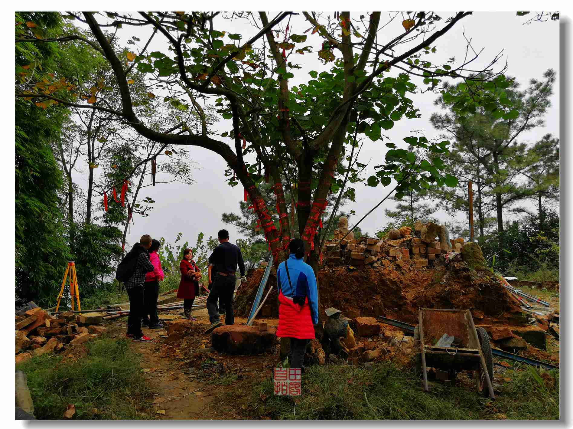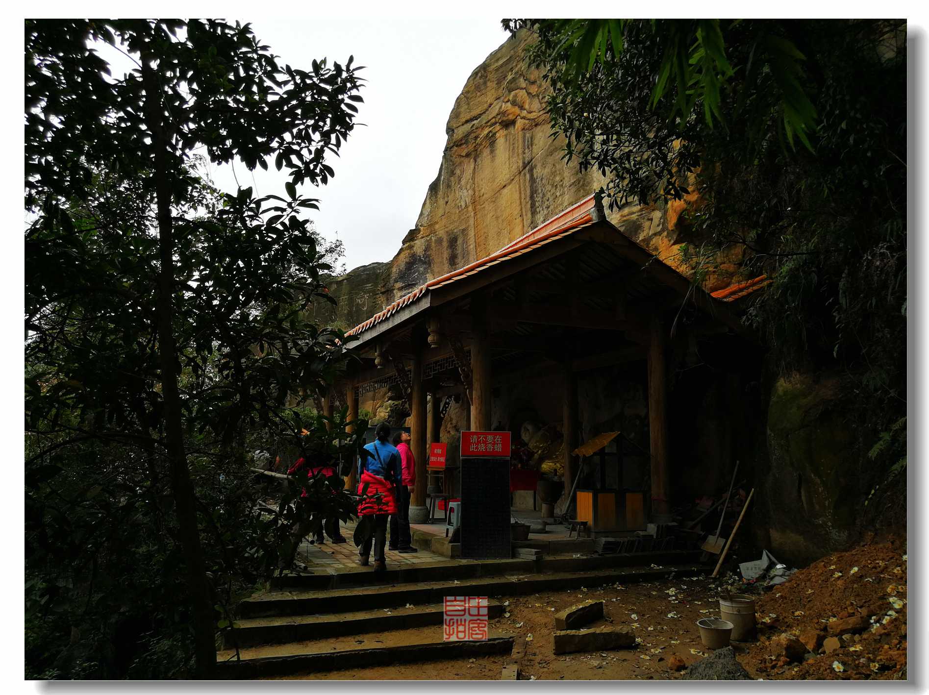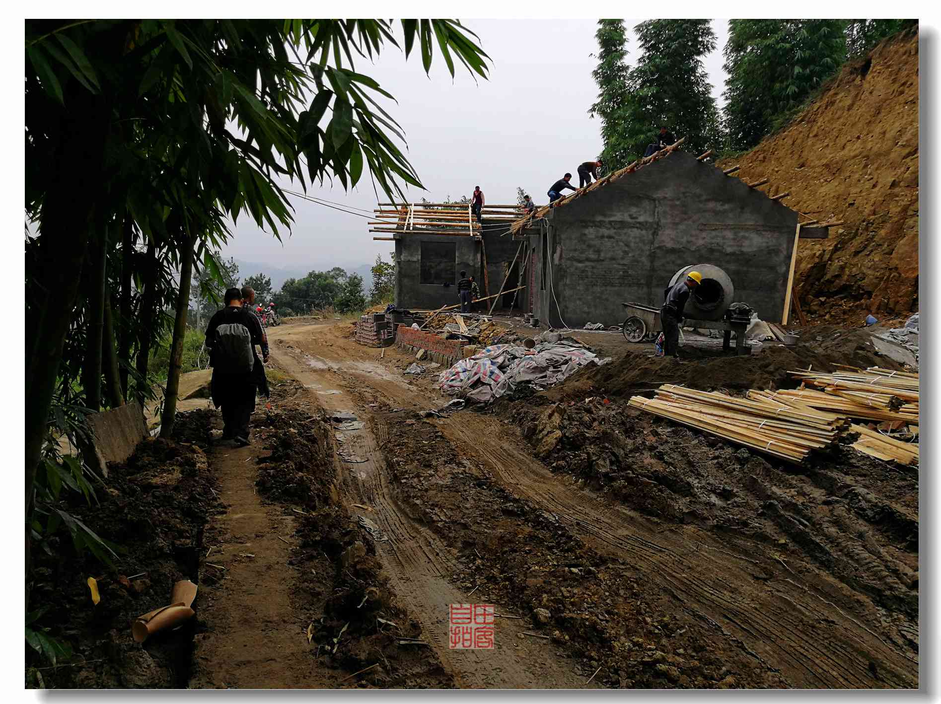几位山民,正在修整庙宇,据说要修复哈