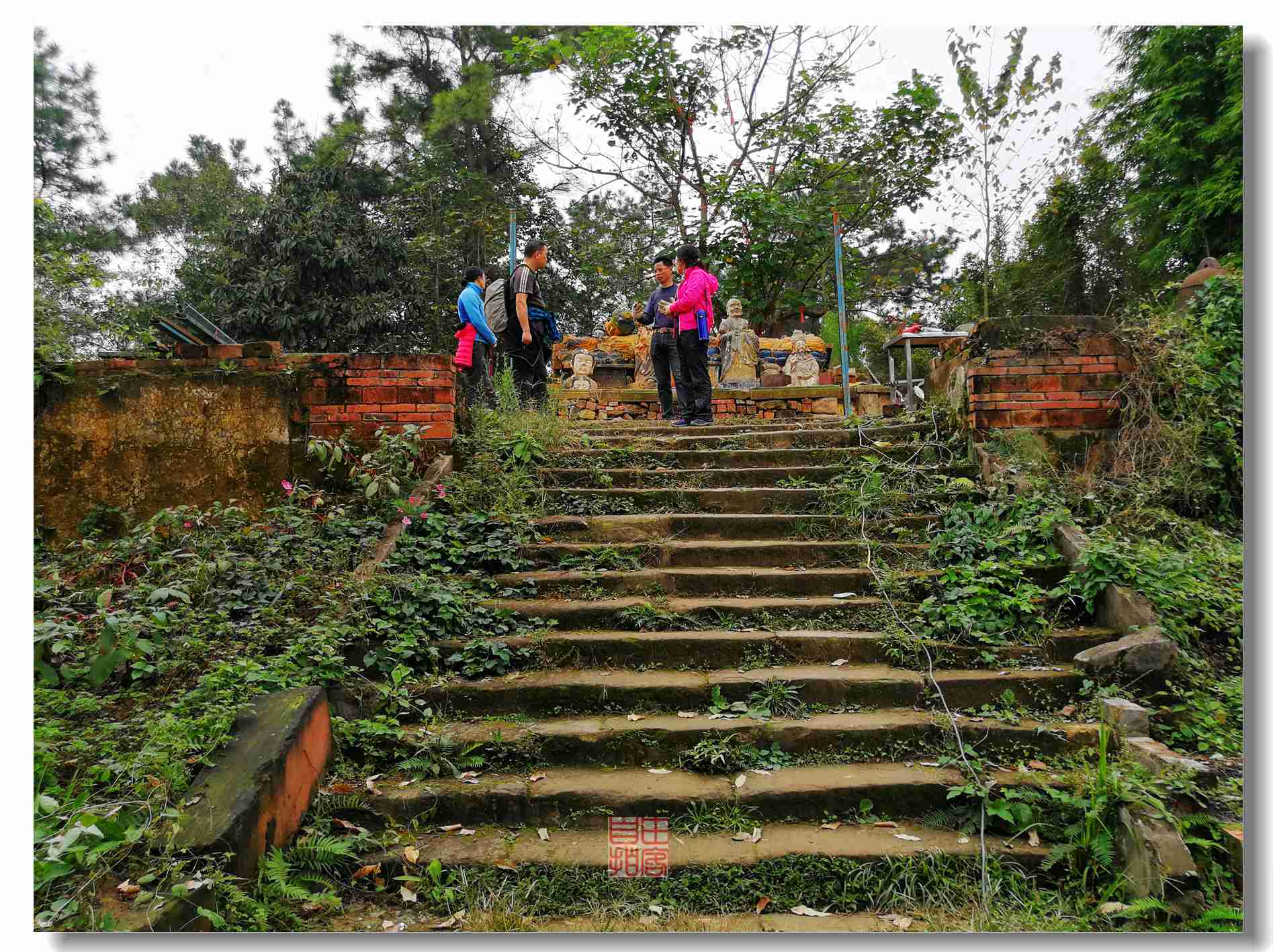 看到一个奇葩,一位大叔级别开着拓儿就上来了,里面还坐着几个女汉纸,还有小孩。在下面坝子下了人,又独自吭哧吭哧把车车开到了庙子附近,下来就跟没事儿一样,不得不服!