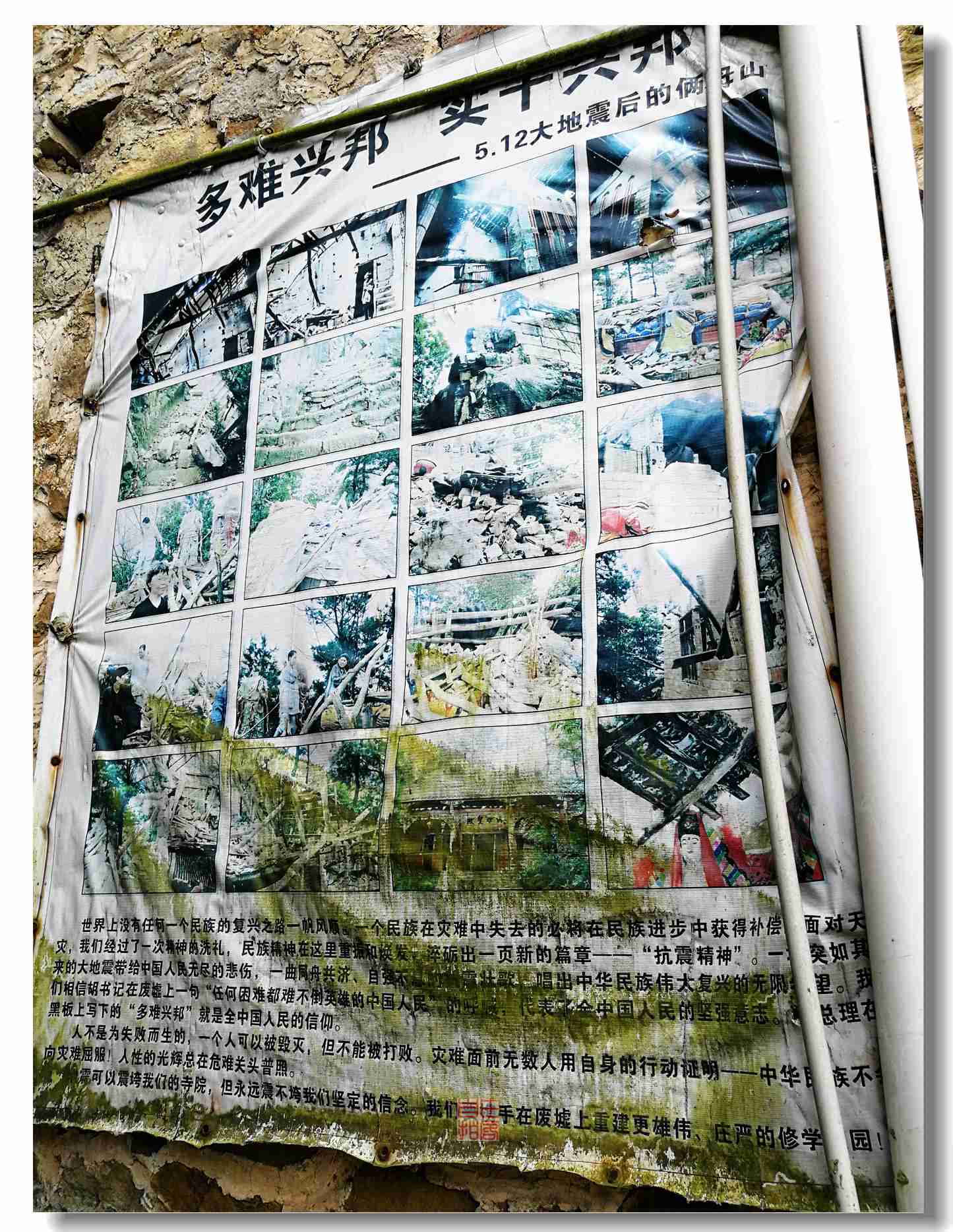 多难兴邦,实干兴邦。介绍俩母山震后情况海报业已腐朽,不过时隔多年,早该恢复了