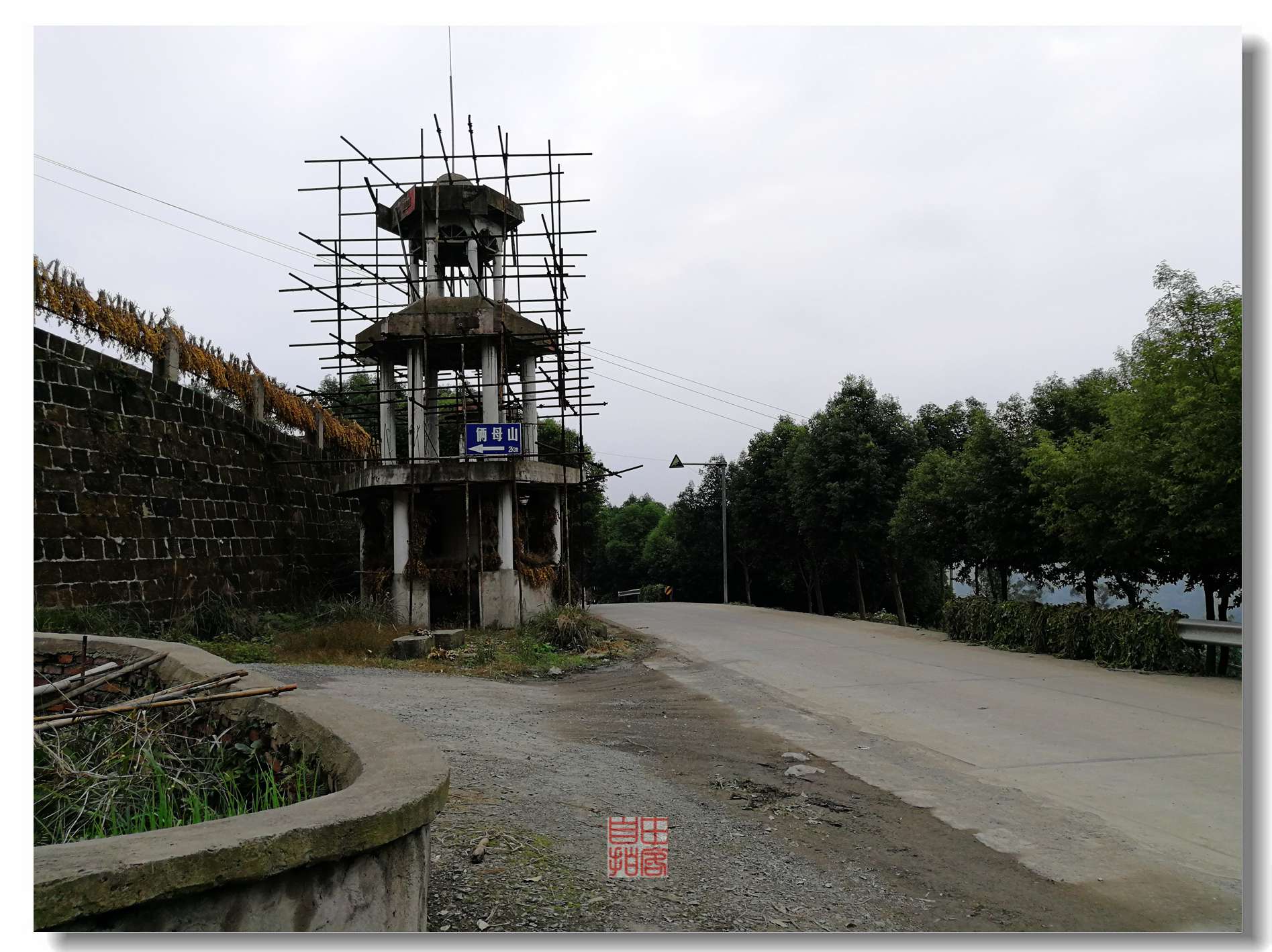 不起眼的路口,还搭着脚手架的塔子。揖别原味俩母山,“我见青山多妩媚,料青山见我也如是”,登山则情满于山,观海则意溢于海。关山难越谁悲失路之人,萍水相逢尽是他乡之客。愿再见,香火缭绕,花开不败,天下穹窿甲天下!