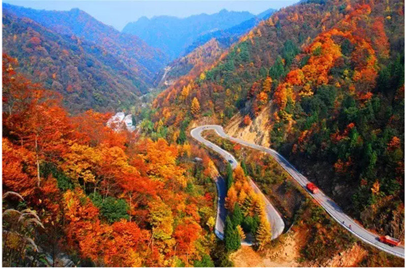 这里的枫叶因红得壮观,当秋天来临,大片的丹枫宛如为群山披上了红毯,登高远眺的景致美得让人沉醉。