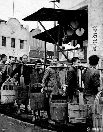抗战时期,重庆的挑水夫,在那个年代,能做体力活的,老老少少都要做