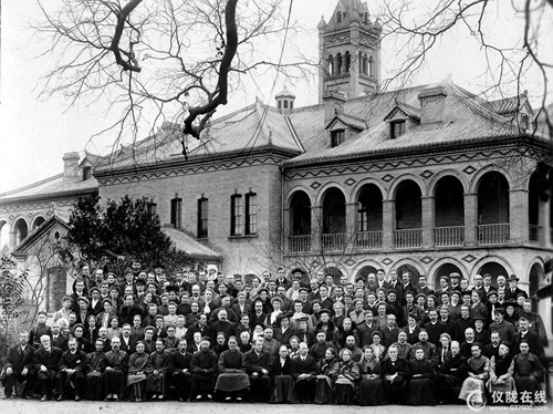 百年前,传教的外国人在成都陕西街教堂合影