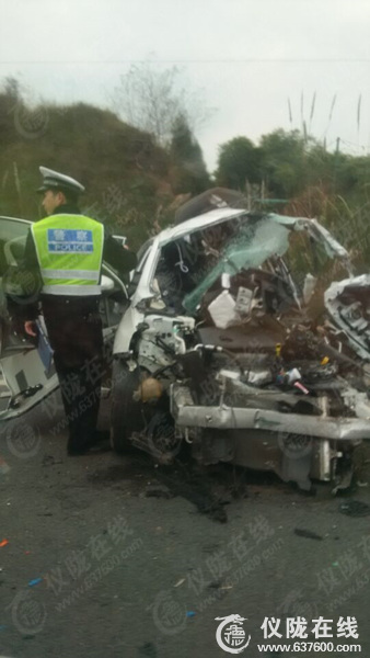 据仪陇在线网友爆料称:12月20日下午,仪陇县赛金段高速路附近发生一起严重车祸,一小车撞向旁边的护栏,导致车辆完全报废,据网友现场图看当场2人死亡。(加微信或QQ 100637600 关注仪陇本地信息)