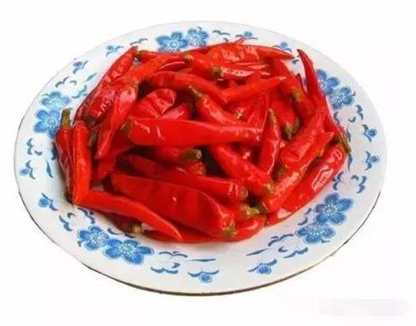 整个的红辣椒,经泡菜坛的酸盐水侵泡后,色泽诱人,那酸爽,想一想都口水直流三千丈!