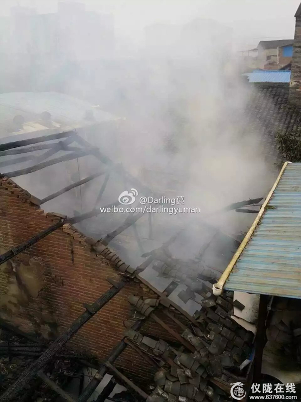从该网友发布的现场照片可以看到,事发地点位于新政镇铁匠街,明显可以看到有白烟冒出,多间房屋屋顶瓦片掉落在地,火灾并没有造成人员伤亡。