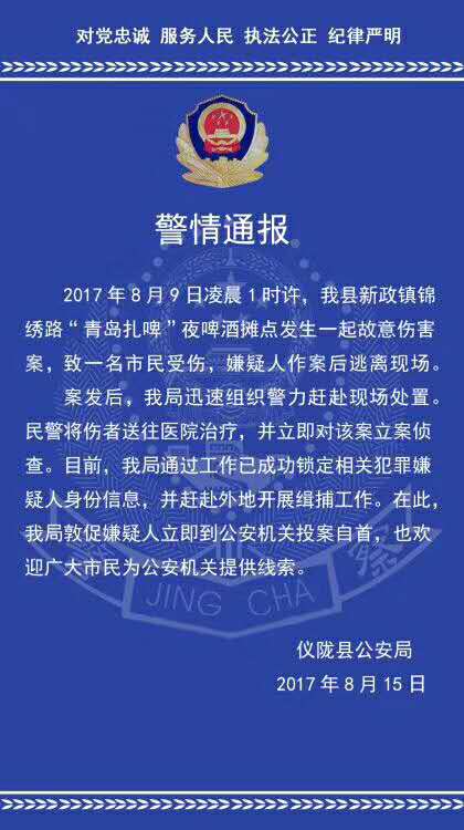 8月23日下午18:00时许,仪陇县公安局8 09(新政镇仁和街与锦绣路交汇处青岛扎啤外故意伤害案)专案组追逃凯旋归来,多名涉案嫌疑人被押解回仪陇。那谁!谁!谁!还记得不?小编前篇微信文章说了,警察叔叔风里雨