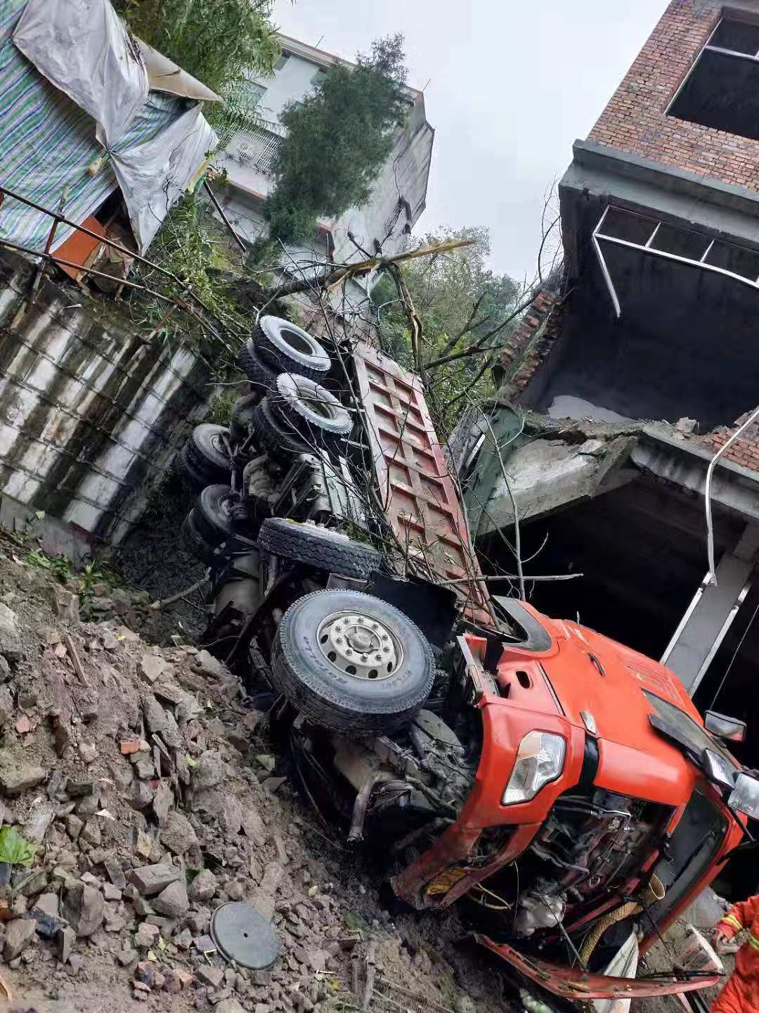 据网友今天爆料:今天在金城镇上面发生一起交通事故,老县城东环路至电厂河桥头处一辆大货车不知道怎么回事从公路直接先撞到正在修建的楼房,然后掉下来,大货车车头严重受损,楼房也损坏一边,事故发生后,交警和消防以及120很快到达现场抢救伤员,伤员已送往医院,具体的事故原因有待调查。