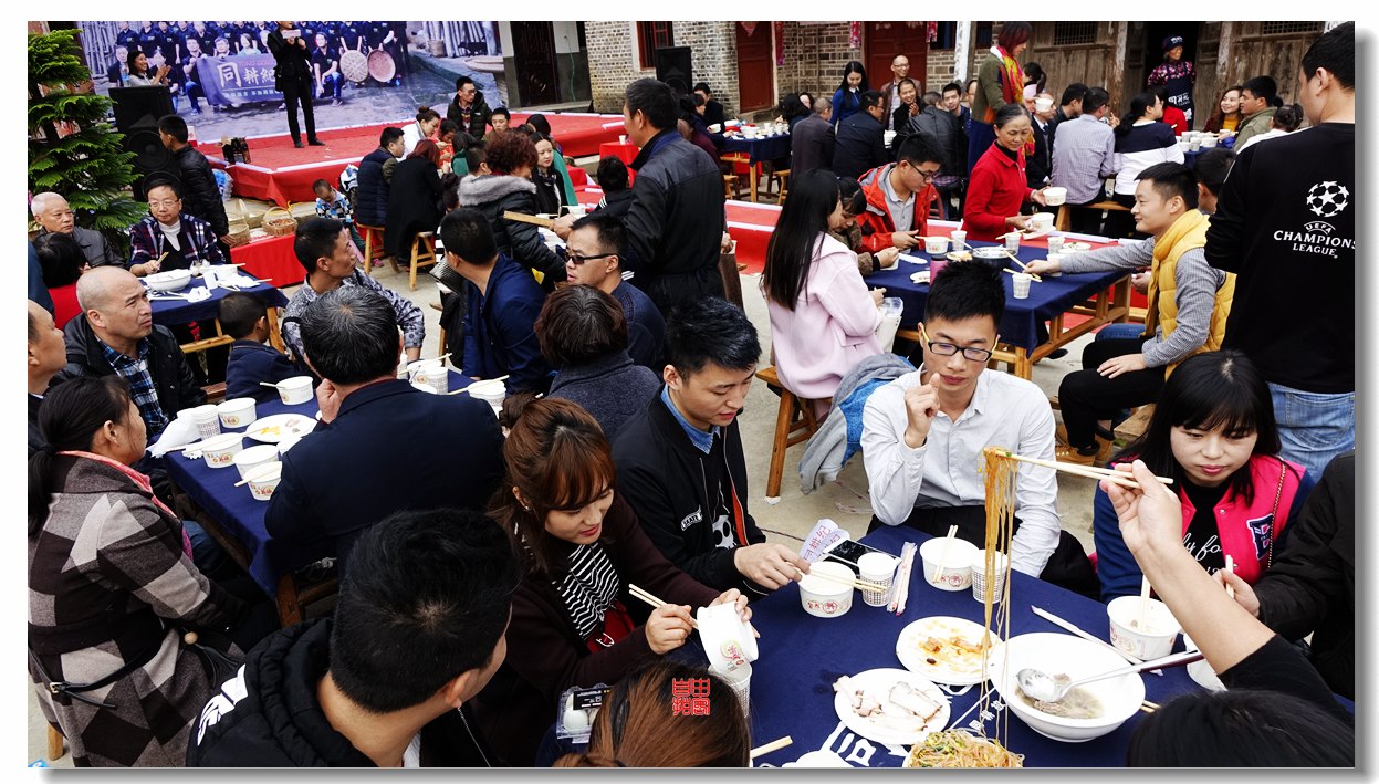 上午10时,乡猪宰杀庆丰年祭祀大典开始,200多人齐聚何家祠堂大院欣赏节目表演,瑜伽、肚皮舞、爵士舞、吉他、跆拳道、气功喷火表演等,异域风情的舞蹈跳起来,悠扬欢快的歌儿唱起来。随即浓郁乡村特色文化走秀展示,到场人人有奖派送,香飘十里的乡村十大碗,吃熬墩子、嗨菜干饭、喝葱花淡醋汤,乡风浓于酒,余味悠长。拍客偶然看到,一位大爷跑得风快,把一串烧烤送给坐在檐下看节目的太婆,然后在熟人的打趣声中离开,太婆满是皱纹的脸上洋溢着幸福一小口一小口地吃得有滋有味。