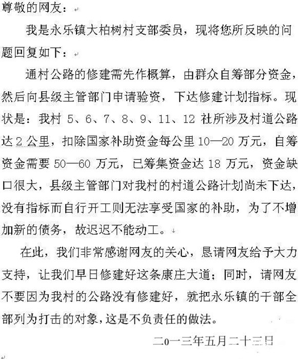 仪陇县永乐镇红砖七队大柏树村回复仪陇在线:“这是什么干部?给了钱就是修的这样的路?”