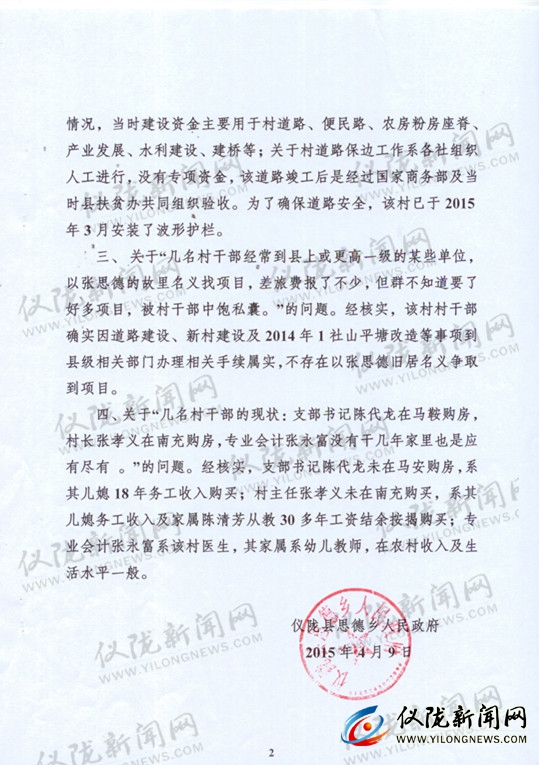 1,有人在网上发了这个帖子之后,听说当时村支书陈代龙在县上开会,第一时间就怀疑村上谁谁谁发的这个帖子,准备对谁谁谁打击报复,在当时他们怀疑了很多人,最后他们知道了这个发帖子的人,听说是韩家湾村4社的谁谁谁,为什么他们知道是谁发的帖子,这就是我们县乡一级政府上访条例的弊端。所有在县上或者网上上访的事情,都是退回给被上访者的上一级单位处理,也就是你要反映韩家湾村委,那么这个事情始终是要韩家湾村委的上级(就是思德乡党委)来处理,前面说过,思德乡党委是韩家湾村委的直接上级,思德乡党委书记冉XX经常跟韩家湾村委的几个人一起打牌,喝酒,吃饭等,说好听一点就是酒肉朋友加上下级关系,说不好听点就是狼狈为奸的利益团体。这样的上访有用吗?上访者的电话和名字通过村委的上级思德乡党委透露给韩家湾村委还不就是一句话的事情吗?