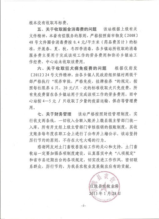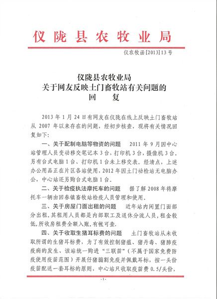 仪陇县农牧业局关于仪陇在线网友发帖“仪陇县土门镇畜牧兽医站“嘴上腐败”应尽早入罪”一文回复。