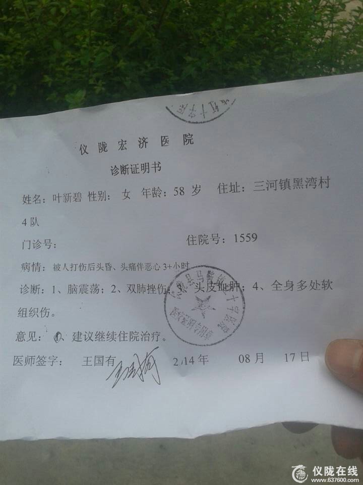 无奈之下,老伴颜希凯只好先将老人送到了三河派出所报案,民警拍了照,并要求村支书前来了解情况,老人的老伴打电话给村支书,开始村支书还一副很不耐烦的语气说:“莫名其妙”,后听说是派出所传呼,才十分不情愿的前往。民警了解情况之后,说先去医院检查,等有了检查结果再处理此事。老伴将老人送到三河镇医院,医院说病情严重,拒绝受理。后又去了条件稍好的马鞍镇宏济医院,待第二天才拿到检查结果,检查结果是:脑震荡,双肺挫伤,头部血肿,身体多处软组织受伤……老人亲属拿着检查结果找到派出所,民警称不构成犯罪,不能实施抓人,推脱说要他们找当地村干部调解,老人亲属多次找了村干部均没有给出明确回应,四处碰壁的老人后又多次找三河镇政府出面调解,政府人员称:很忙,叫他们找警察……,就这样,此事被当成皮球一样踢来踢去,相关部门和人员均默然无视……时至今日,老人躺在病床上10余天,病情还未见明显好转,医药费已花费上万,这对于这个本就经济困难的家庭来说,时刻都在饱受着经济和精神的双重压力,而恶妇邓春容却依旧逍遥法外,不曾支付分毫的医药费,也没受到应有的惩罚,政府机关又迟迟不给予相应的措施和帮助,置老人的安危和生死于不顾!!