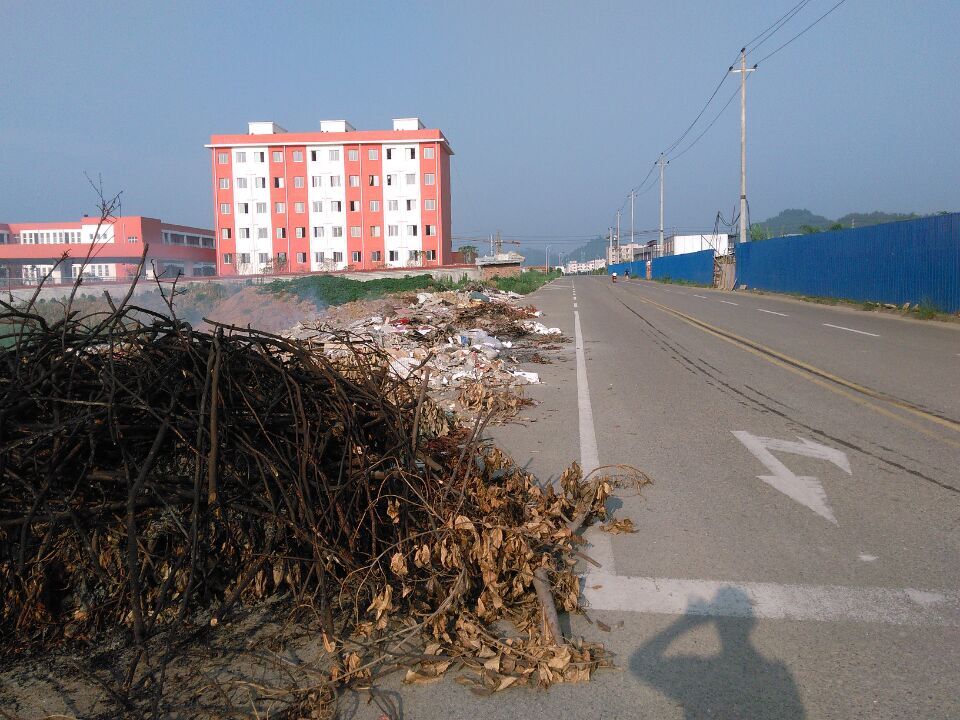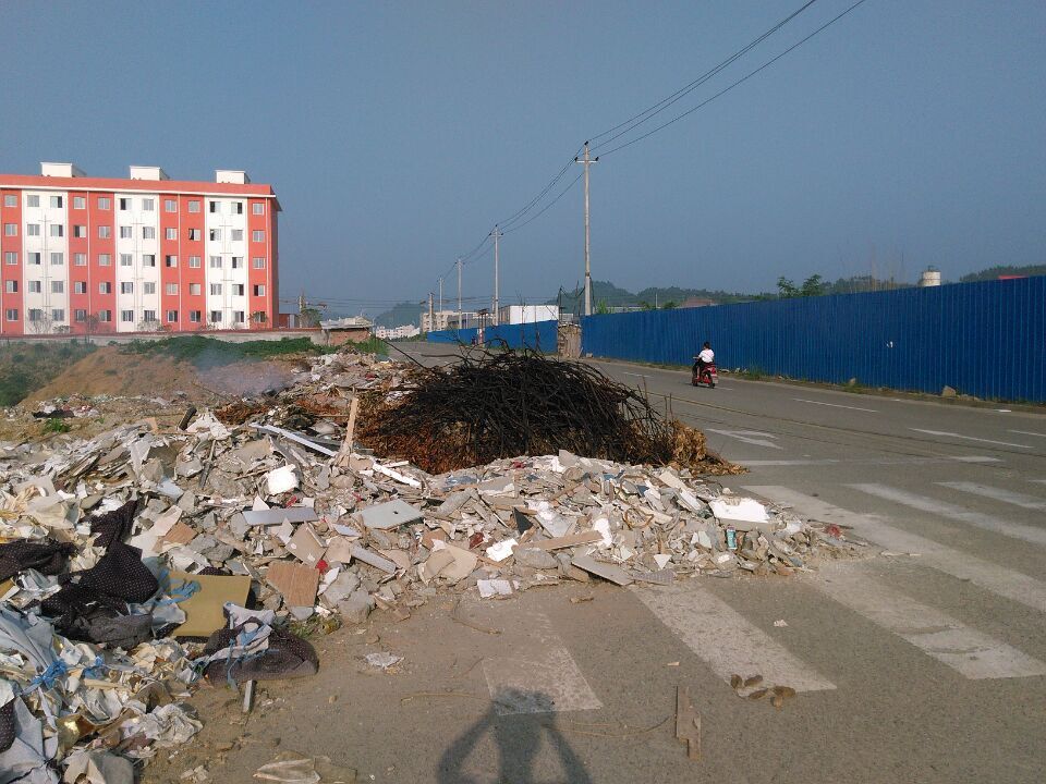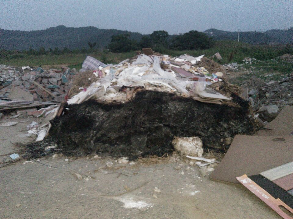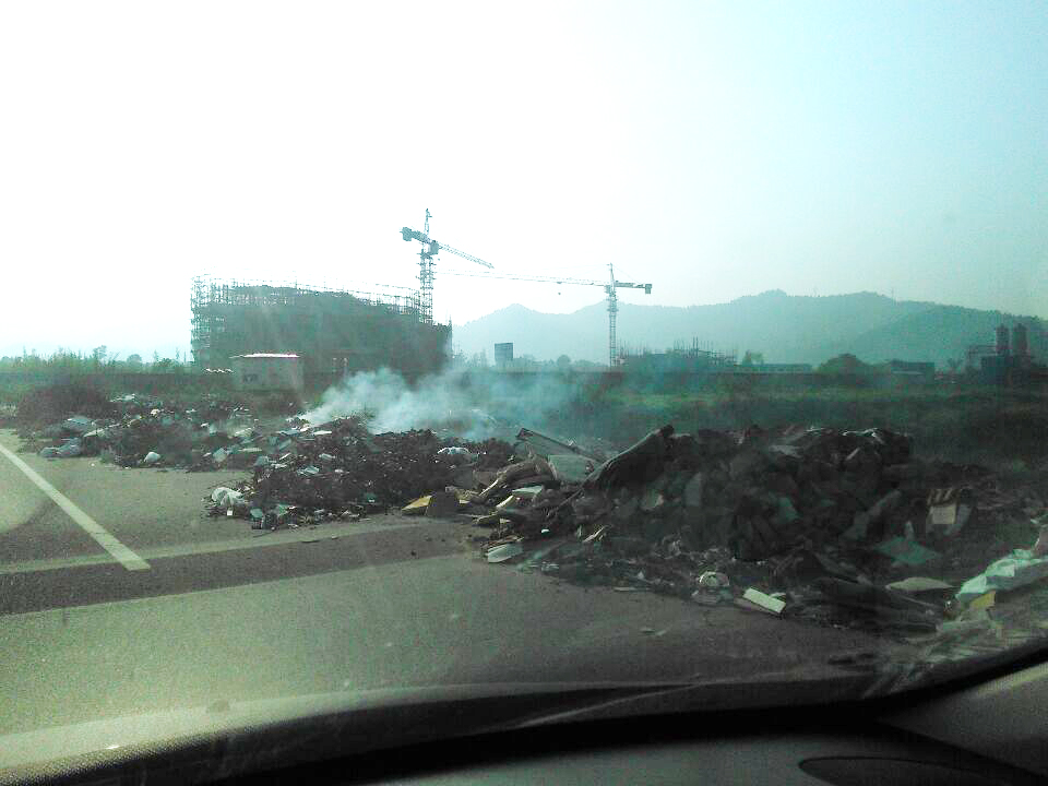 多次见到网友说篱堆公园乱丢弃土、垃圾的事儿,原以为这些违法行为会有所收敛,但似乎这些乱倒弃土垃圾的行为,有增加,无减少,甚至已经向道路上蔓延,过两天就有人在篱堆酒店的烂尾楼和篱堆小学之间的公路上焚烧垃圾,搞得乌烟瘴气,臭气熏天,路边的有奖举报电话5152110似乎没有吓到哪个人,估计这个牌子是相关部门立在路边辟邪用的,要不怎么就在这块牌子下,倾倒垃圾,焚烧垃圾,制造臭气?