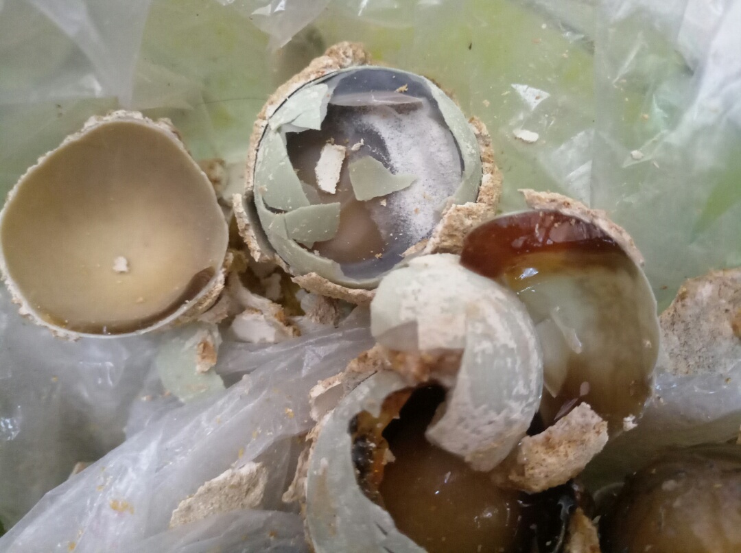 购买13个皮蛋剥皮后有11个发霉发愁,黑心店家竟然昧着良心出售劣质霉变皮蛋!