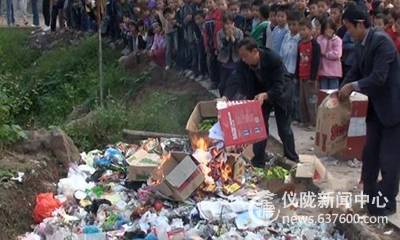 学校管理人员正在处理焚烧零食即将处理焚烧的零食