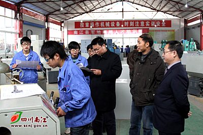 本站讯 12月16日,仪陇县委常委、副县长郭宗海率队到南江县,考察职业教育发展相关情况。南江县副县长岳云华及相关部门负责人陪同。 考察团一行来到小河职业中学,参观了学校实训中心,现场观摩了技能操作教学。