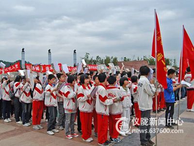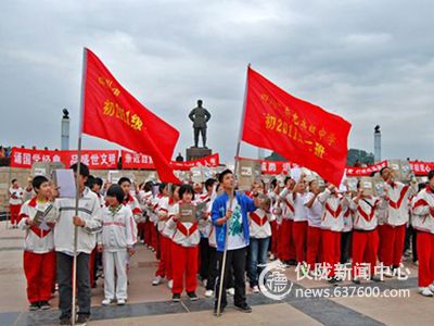 当天下午3点15分,来自南高中学9个班的同学身着统一校服,在老师的组织下,在朱德铜像前齐声的朗诵及背诵了《国学经典诵读》内的诗词。