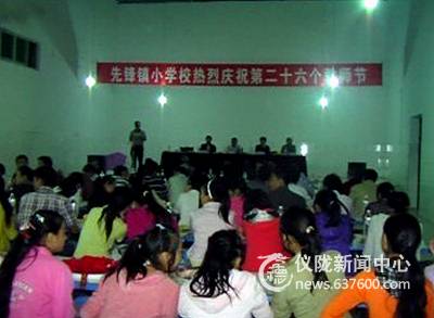 本网讯(先锋小学 姜小波)9月9日,仪陇县先锋小学校在初中部食堂热烈庆祝第26个教师节。会议由副校长周春明主持。列席本次庆祝会议的有:退休教师,在职教职工,学生代表,先锋镇党委书记康琳、镇长陈思智、副镇长唐昌鸿应邀出席了庆祝会。会上,镇党委、政府发表了贺辞并对一年来的优秀教职工进行了表彰。