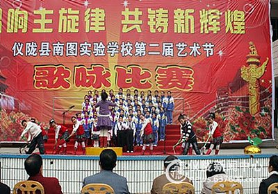 本站讯(莫强)让我们怀着感恩的心歌唱,歌唱我们的幸福生活;让我们怀着感恩的心歌唱,歌唱我们的伟大的祖国。仪陇县南图实验学校11月23—24日分小学部、初中部举办了“唱响主旋律共铸新辉煌”为主题的校园班级歌咏比赛。
