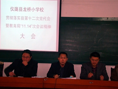 11月15日晚7时,龙桥小学召开全体教职工会议,认真传达学习中共仪陇县第十二次党代会暨县教育局“11.14”会议的重要精神。校长陈立伟同志主持了本次会议。
