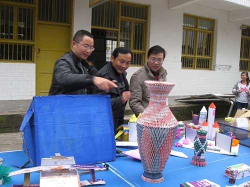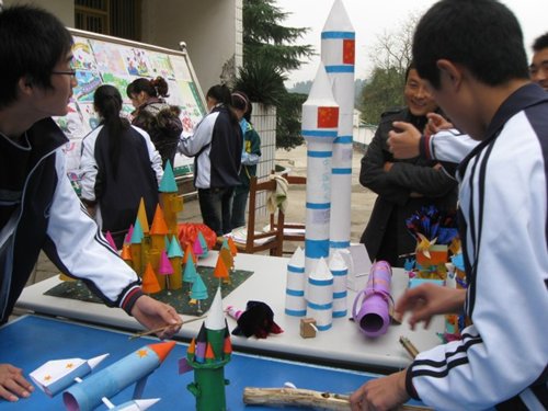 同学们自己动手制作的智能房屋模型、火箭、飞船,把生活的废纸,废旧塑料制作的版画、工艺品,一件件都令人惊奇无比。老师们惊异于天天相处的孩子居然有这样的创意;孩子们欣赏着自己的作品也觉得不可思议呢。还有同学们精彩的科学故事:“干洗”的来源,“烂西瓜”里的诺贝尔奖,遥远的火星生命……真神奇呀!科学知识竞赛把科技节推向了高潮,全校同学都全神贯注地听题,抢答,争得不亦乐乎!
