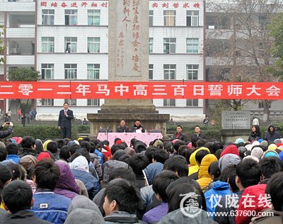 为了激励高三学生以更加饱满的热情和必胜的信心迎接高考。2月27日上午10点,马鞍中学一千余名高三年级学生,在学校内操场庄严地举行了高三百日誓师大会。学校领导及高三年级全体师生与会,动员大会由高三年级组邓超老师主持。