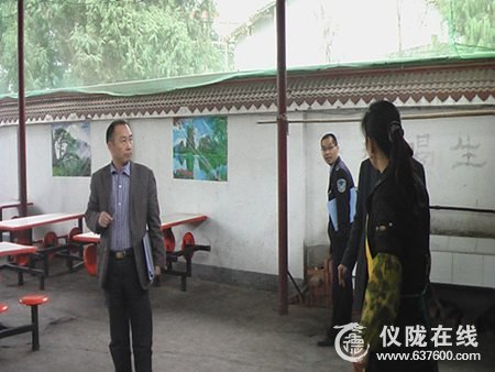 2012月3日23日上午10时,仪陇县回春镇政府安全领导胡文峰、杜明述,深入来仪陇县来苏小学,对学校食堂食品安全工作进行了专项检查。检查的内容主要有三个方面:一是卫生状况(个人卫生、设备卫生、食品卫生、环境卫生);二是库房内物资存放情况,物资存放是否堆放整齐,有无记录;三是台账登记及索证情况。尤其对食品添加剂、台账、索证、食品保质期、灭蝇防鼠、餐具消毒情况进行了重点检查。