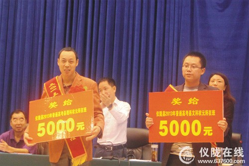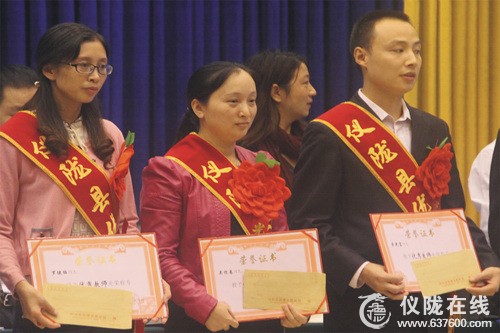 会议中仪陇县政府副县长李涛宣读了一系列表彰决定,仪陇县宏德中学校教师吴迎春老师和2013年高考状元所在班班主任王鑫老师在大会上受到表彰。