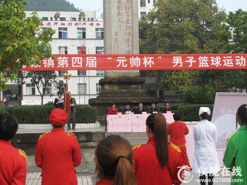 上午8点30分,全镇8支代表队200余名运动员、教练员、裁判员、领队及马鞍镇老年文艺腰鼓队参加了踏街游行。9时许,马鞍中学内操场彩旗飘飘,锣鼓喧天,热闹非凡,马鞍镇 第四届“元帅杯”男子篮球运动会在此隆重举行,8支参赛队伍伴着雄壮的运动员进行曲,在解说员声情并茂的介绍中依次列队进入内操场。开幕式由马鞍镇党委书记田景耀致开幕辞,朱德故居管理局副局长邓成功宣布开幕。