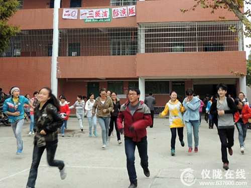 在“11·9消防日”来临之际,2013年11月7日上午10点15分至45分,仪陇中学在教学九楼组织高2013级师生开展了一次大规模的消防应急疏散演练。整个过程紧张有序,没有出现拥挤摔倒现象,消防应急疏散演练活动取得了较满意的效果。