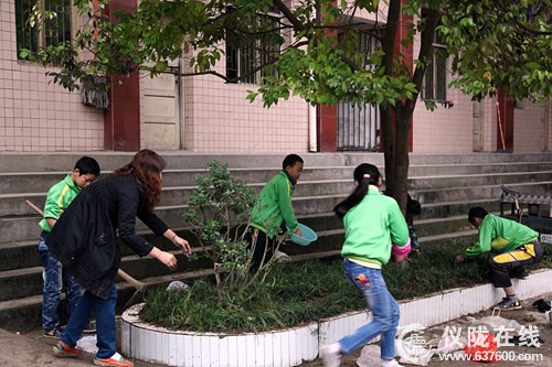一张张花台前,劳动火热进行。有的同学挥锄松土,额上的汗珠沁出来了全然不顾;有的同学挽着衣袖,将麦冬苗端端正正地放好,再垒上鲜活的泥土;有的同学端来了一盆盆清水,一株一株地挨个儿浇灌;有的同学带来抹布、垃圾桶,将花台的里里外外收拾干干净净。