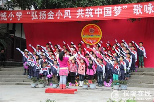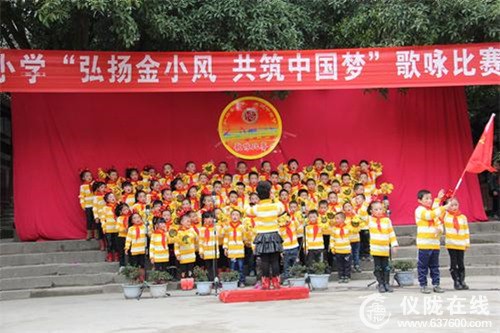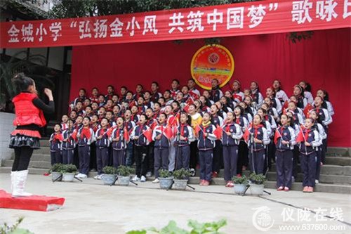 为激发学生饱满、昂扬的爱国热情,树立热爱学习、报效祖国的决心,努力营造和谐向上、健康文明的校园文化氛围,展示当代金小学生意气风发、积极向上的精神风貌,放飞莘莘学子实现中华民族伟大复兴的中国梦。11月25—26日,仪陇县金城小学举行了“弘扬金小风,共筑中国梦”学生歌咏比赛。