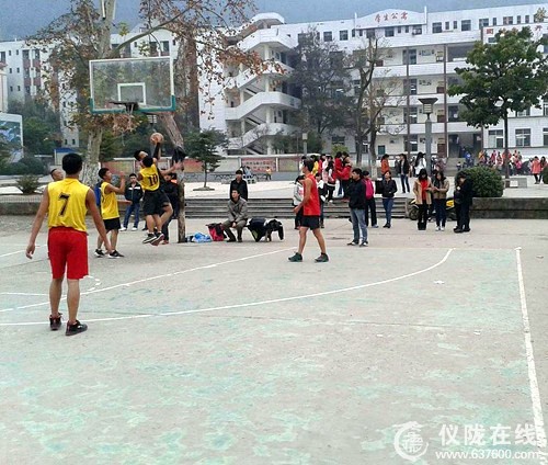 赛场上,球员们精神饱满,斗志昂扬,特别是初三的球员,年龄虽小,但进攻、防守、抢球,投篮配合得极其默契,引来围观同学的一阵阵喝彩;场外的啦啦队员则拍打着手,不时地为队员们加油、欢呼,整个赛场气氛活跃。