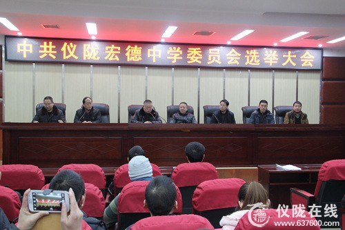 1月5日晚,仪陇宏德中学党委召开全体党员大会,进行第一届党委委员、书记选举。县直机关工委副书记邓劲松同志,宣传文卫机关党委专职书记李保平同志出席会议,学校各支部党员参加了会议。