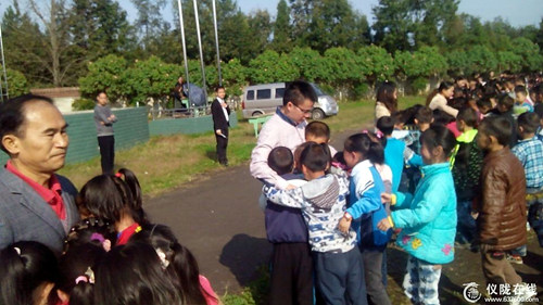 10月22日上午9时许,全校师生及部分陪同学生的家长有序的聚集在学校露天运动场上,聆听了一次震撼人心的演讲,主讲江世宇的语言时而激扬、时而柔缓,伴随的变换的音乐,他一步步地让孩子们学会了知恩、懂得了感恩:祖国的呵护之恩、社会的关爱之恩、父母的养育之恩、老师的教育之恩,在场的人们都被感染了,老师和家长们红着眼睛,孩子们在演讲者的带领下大声的呼喊:爸爸妈妈,我爱你;低年级的一些同学更是抱着老师苦喊着:老师,你辛苦了!