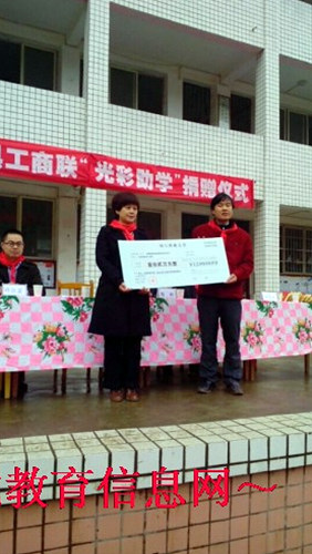 在本次活动中,县工商联不仅资助我校十二万元整帮助我校挖水井、建蓄水池,解决了我校饮水难的问题,还对我校的“三好学生”进行了现金资助,整个仪式温馨而感动。