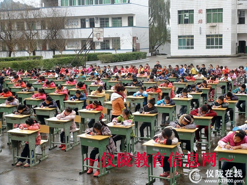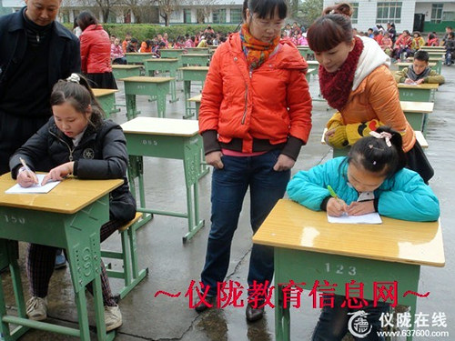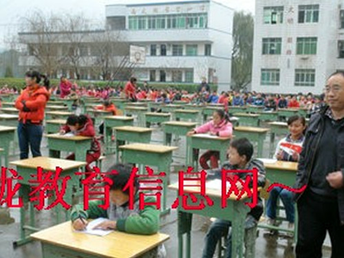 五、六年级全体学生在认真参加汉字听写大赛