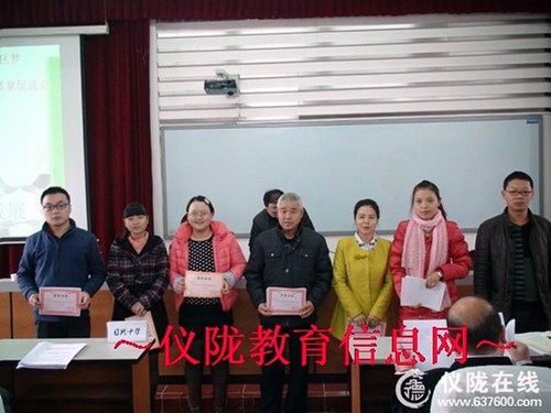通报表彰,激励先进。会上,督导组组长李霞同志通报了我区2014届中、小学毕业班学校质量综合评价在全县的占位情况,表彰了2014年度片区中、小学毕业班教学质量评价先进集体和先进个人,碧泉小学、马路小学、来仪小学、日兴小学、日兴中学等学校分别获得了片区小学、初中教育质量综合奖,汪仕太、邓丽等51位老师分别获得小学、初中学科质量等级奖。督导组分别向获奖先进集体和个人颁发了奖牌和荣誉证书。