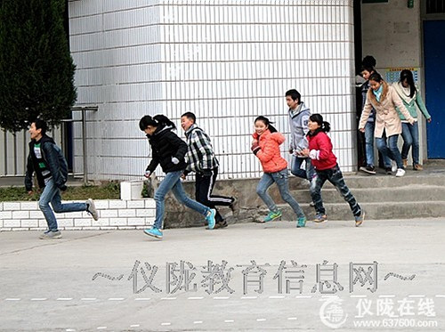 上午10:20,校园内骤然响起防空警报,全校防火防震应急疏散演练活动正式开始。各班主任和授课教师立即组织学生从上课的常规状态,迅速转换成紧急状态,全体学生在老师的组织下有序地进行疏散,按照规定的疏散路线向指定的集结地点集中。疏散演练过程中,教学楼各楼梯口都有专人维持秩序,整个演练过程紧张有序,在1分钟38秒内全校师生有序从教学楼、办公楼等地疏散撤离到操场。