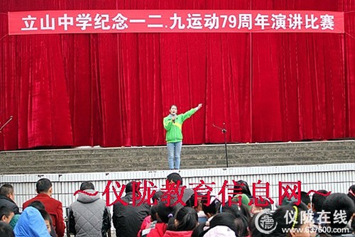 为纪念伟大的“一二•九”运动,继承和弘扬爱国主义精神,激励当代青少年树立为报效和振兴中华民族而努力学习的远大志向,也为了活跃校园文化生活,提高同学们的综合素质和综合能力,展现青春风采。12月9日下午,我校在学校后操场成功举办了纪念 “一二•九”运动演讲比赛活动。教处主任王思贤、教科室主任刘滨藻、语文组老师马辉、李林学、邓俊英、魏艳担任了比赛评委,全校1200余名师生共同观看了演讲比赛。